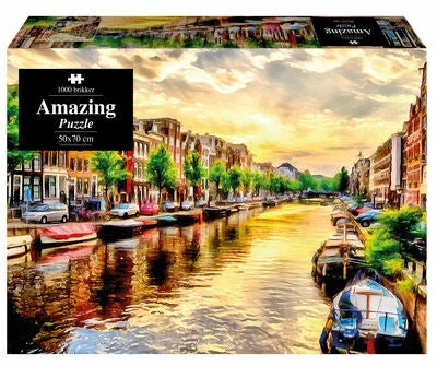 Et puslespill fra Amazing-serien 1play, med et motiv av vakre Amsterdam. Puslespillet består av 1000 biter, som sammen danner et vakkert motiv. Passer for de som har lagt mange puslespill tidligere, og vil ha et utfordrende og morsomt puslespill å bryne seg på.Anbefalt alder: fra 15 år.