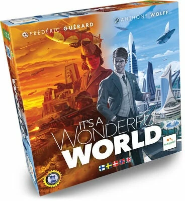 It’s A Wonderful World lar deg spille som et ekspanderende imperium, og velge din egen fremtid. Planer ekspanderingen nøye for å utvikle din produksjonskraft og herske over den nye verden. For å vinne må du utvikle deg raskere og bedre enn konkurrentene dine. It’s A Wonderful World handler om «card drafting og engine building», og passer fra 1 til 5 spillere. Hver omgang drar spillerne 7 kort og velger så hvilke som skal brukes for å skaffe ressurser, og hvilke som skal spares for konstruksjon. Med konstruksjonene produserer du ressurser hver omgang og/eller vinner seierspoeng. Når ett kort er ferdig bygget legges det til i spillerne Empire for å øke spillerens produksjonskapasitet for hver omgang. Den mekaniske twisten er at produksjonsfasen fungerer i en spesifikk ordning. Vær nøye med planleggingen! Anbefalt alder: fra 14 år.