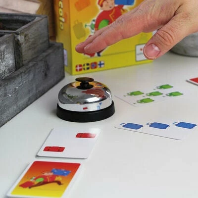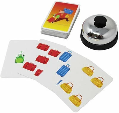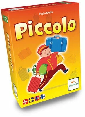 Morsomt Piccolo brettspill for hele familien. Spillkortene viser alle hotellets kofferter i ulike størrelser med ulike farger og mengder. Den første personen som ser fem identiske kofferter og sier Piccolo vinner! – CE-merket. – Anbefalt alder: fra 6 år.