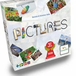 Pictures er et morsomt selskapsspill for hele familien. Form bildet fra ditt hemmelige bildekort med de tingene du har foran deg, som skolisser, fargeklosser, pinner og steiner, på en måte slik at de andre spillerne kan finne ut hva du har avbildet. Hvordan lager man for eksempel en snegle ved hjelp av klosser og steiner? Alle spiller samtidig. Gjett deretter hverandres kreasjoner og få poeng for hver riktig gjetning!Anbefalt alder: Fra 8 år.