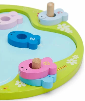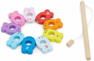 Et morsomt fiskespill fra Classic World for de aller minste. Du får med to fiskestaver og ni fisker i ulike farger. Fiskene fanges opp med hjelp av en magnet i snøret og hver fisk har et nummer som motsvarer deres vanskelighetsgrad.Anbefalt alder: 3 år +.Mål: 25 x 25 x 0,8 cm.Materiale: Tre.
