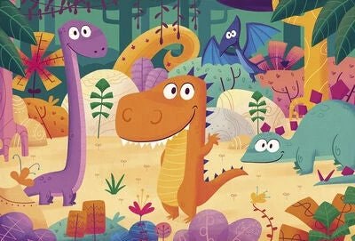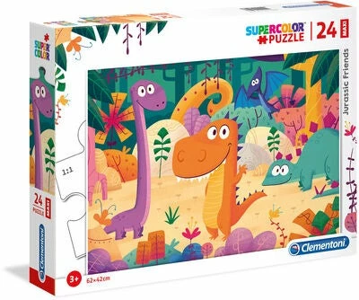 Puslespill fra Clementoni, med motiv av tegnede figurer fra Jurassic friends. Et puslespill med 24 brikker, for hele familien.Anbefalt alder: Fra 3 år.