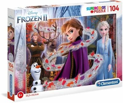 Vakkert puslespill med motiv fra Frozen 2. Inneholder hele 104 brikker. En morsom måte for barn å trene og utvikle sine kognitive ferdigheter. Anbefalt alder: Fra 6 år.