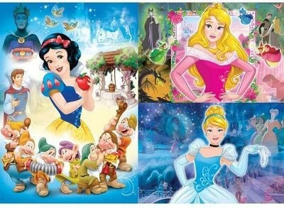 Et sett med tre morsomme puslespill med motiver fra Disney-prinsesser. De tre puslespillene har 43 brikker hver, som sammen danner fine motiver av barnas favorittprinsesser. Med et puslespill kan barnet leke og øve sin logiske tenkning samtidig!Anbefalt alder: Fra 4 år.