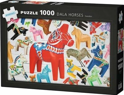 Et puslespill med motiv av dalahester, fra Egmont Kärnan. Legg dette herlige puslespillet med motiv av de tradisjonelle trehestene fra svenske Dalarna. Med 1000 biter tilbyr puslespillet mange timer med underholdning! Anbefalt alder: fra 8 år.