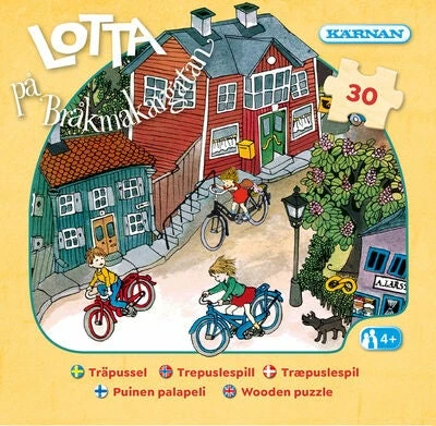 Puslespill i tre med motiv fra Astrid Lindgrens populære eventyr om Lotta fra Bråkmakergata. Pulsespillet inneholder 40 store brikker som er lette å gripe for små barn. Legg brikke for brikke, og se hvordan motivet tar form samtidig som du trener logikk, tålmodighet og hukommelse.Anbefalt alder: fra 2 år.