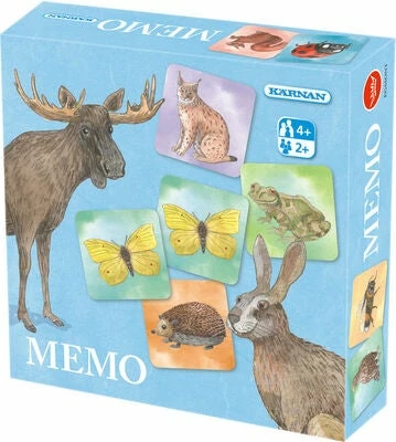 Memospill fra Kärnan med fine, tegnede dyremotiv. Perfekt for å trene på tålmodighet, øye-hånd-koordinasjon og hukommelse. – CE-merket. – Anbefalt alder: fra 4 år.