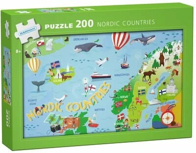 Et fint puslespill fra Kärnan. Puslespillet har 100 brikker, og er laget av papp av høy kvalitet. Illustrert motiv fra Norden, med forskjellige dyr, ting, bygninger og annet som kjennetegner de nordiske landene. Perfekt for skolebarn som vil lære mer om geografi!Anbefalt alder: 6 år +.