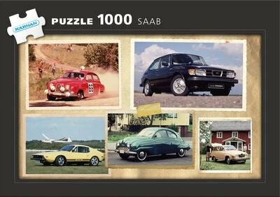 Et fint puslespill fra Kärnan. Puslespillet har motiv med Saab-biler, og består av 1000 brikker.