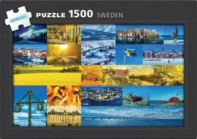 Et fint puslespill fra Egmont Kärnan. Puslespillet består av 1500 brikker, som sammen danner et nydelig motiv av Sverige. Passer for erfarne puslespilleggere, som ønsker en liten utfordring.Anbefalt alder: Fra 10 år.