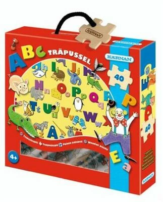 Et både morsomt og pedagogisk trepuslespill fra Kärnan. Puslespillet har 40 biter og oppbevares i en boks med praktiske håndtak når det ikke er i bruk. Puslespillet har et flott alfabetmotiv og passer perfekt for barn som vil lære seg alfabetet.Anbefalt alder: fra 4 år.Materiale: tre.Antall biter 40 stk.