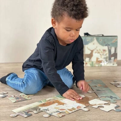 Barnepuslespill fra Egmont Toys, med 40 robuste brikker som kan settes sammen til et flott og gigantisk gulvpuslespill. Det har motiver av søte dyr i skogen. – 40 Brikker. – CE-merket. – Anbefalt alder: fra 1,5 til 5 år. – Papp.