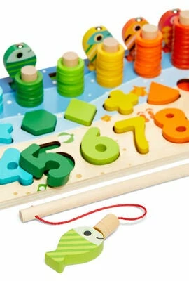 Fiskespill fra Fippla i tre. Det har et fargerikt design og en fiskestang. Fiskespillet har tall, søte fisker og forskjellige figurer. Perfekt for å trene opp ditt barns logiske tenking på en morsom og smart måte. – CE-merket. – Anbefalt alder: fra 3 år. – Tre.