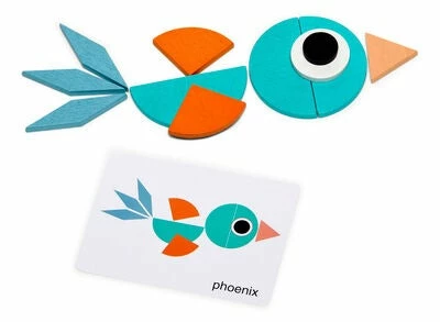 Puslespill fra Fippla i tre. Det har 180 fargerike deler og kort med forskjellige motiver. Lag forskjellige former etter motivene på kortene eller lag dine egne. Perfekt for mange timers kreativ lek og læring. – CE-merket. – Anbefalt alder: fra 3 år. – Tre.