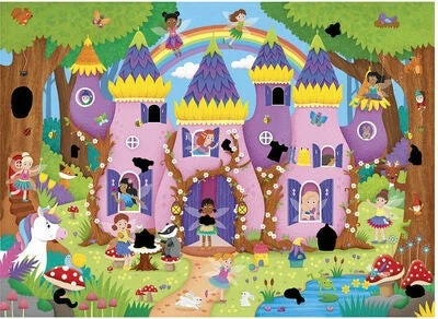 Et magisk puslespill fra Galt med motiv av et fantastisk eventyrslott, omgitt av feer og skogsdyr. Det inneholder 50 brikker, hvorav noen er magiske. Gni de svarte flekkene på de magiske puslespillbrikkene for å se hva som skjuler seg. Etter en stund blir flekkene svarte igjen. Størrelsen på det ferdige puslespillet er 40 x 55 cm.Anbefalt alder: Fra 4 år