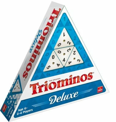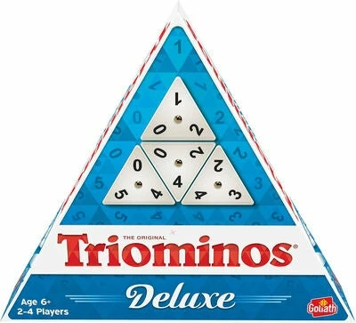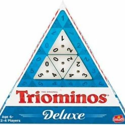 Triominos Deluxe, et spennende brettspill fra Goliath Games! Det er like enkelt å spille som Domino, og minst like utfordrende som Sudoku. Match tallene på brikkene som er lagt ut, for å prøve å danne figurer som gir bonuspoeng.Spilleren med høyest poengsum, vinner!Innhold:- 56 nummerbrikker- 4 stativer- SpillereglerAnbefalt alder: fra 6 år.