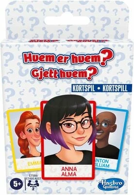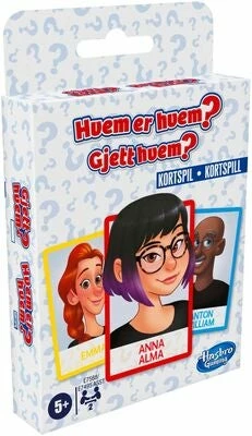 Gjett hvem er et morsomt kortspill fra Hasbro. Utfordre venner og familie med et gøyalt spill! I denne versjonen av populære Guess Who brukes en kortlek for å finne ut hvilken karakter som finnes på motstanderens kort. Et morsomt spill å ta med på reisen eller spille hjemme! Anbefalt alder: fra 5 år.