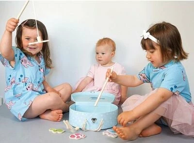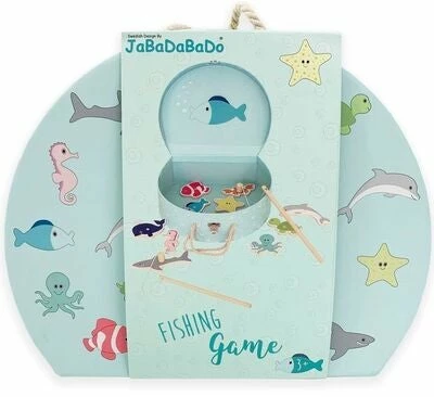 Et morsomt fiskespill i en veske, fra JaBaDaBaDo. Spillet, laget av tre, er et underholdende spill for små barn som har lyst til å fiske. I fiskedammen er det mange søte sjødyr man kan fiske opp med fiskestenger. Den som har fanget flest fisk når dammen er tom, vinner! Spillet kommer i en praktisk oppbevaringsveske med håndtak, som gjør det enkelt å ta det med seg.Inneholder ti forskjellige fisker og to fiskestenger.Anbefalt alder: fra 3 år.