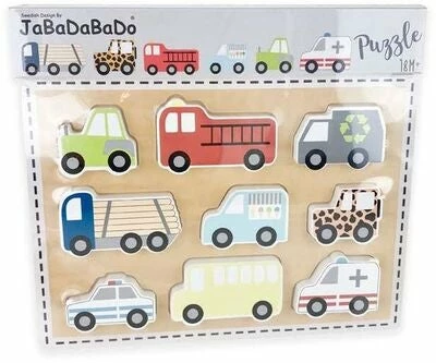 Trepuslespillet Biler fra Jabadabado. Puslespillet består av ni gripevennlige og fargerike biler, som også kan brukes som vanlige leker når de ikke pusles med. Bilpuslespillet er en morsom og utviklende leke for de mindre barna.Anbefalt alder: Fra 18 måneder.