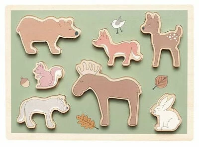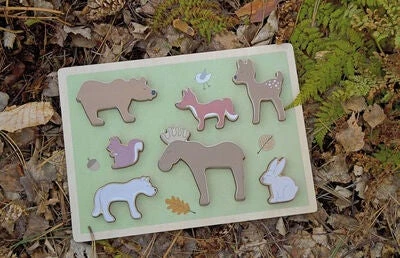 Et trepuslespill fra Jabadabado, med de vanligste dyrene som bor i skogen. Puslebrikkene er ekstra lette å gripe for små hender, og kan også brukes som leker. Passer perfekt til små barn, som et pedagogisk hjelpemiddel for å lære seg skogens vanligste dyr.Anbefalt alder: fra 18 måneder.