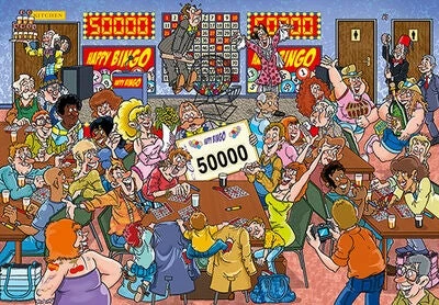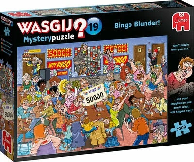 Wasgij puslespill fra Jumbo i papp med et morsomt motiv av folk som spiller bingo. Ta utfordringen og pusle fram det detaljerte motivet, brikke for brikke. Et kvalitetspuslespill for hele familien. – 1000 Brikker. – Anbefalt alder: fra 12 år.