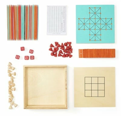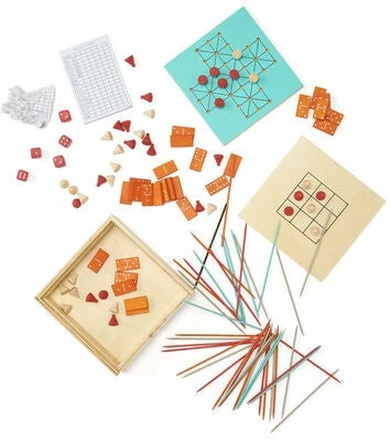 Her får du seks brettspill i en praktisk treboks, fra Kids Concept. Treboksen inneholder de seks klassiske spillene Domino, Mikado, Tre på rad, Yatzy, Møllespillet og Revspillet. Det inngår fem terninger og 20 nøytrale og røde spillebrikker til de ulike spillene. Med dette morsomme spillsettet får du mange timer med underholdning!Anbefalt alder: fra 3 år.