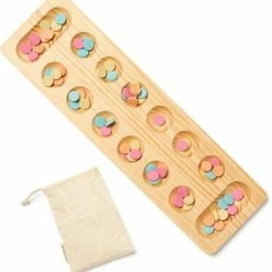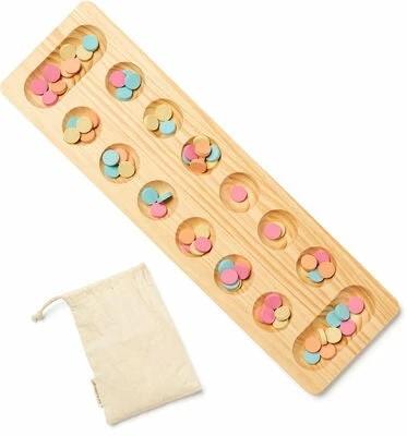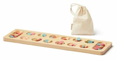 Klassisk Kalaha brettspill fra Kids Concept med en leken design. Det har 48 fargerike brikker og et spillebrett i FSC-sertifisert tre. Målet er å få så mange spillebrikker som mulig i skålen din. Perfekt for å trene opp barnets finmotorikk og mattematikkferdigheter. – CE-merket. – Anbefalt alder: fra 3 år. – schima, bomull, furutre.