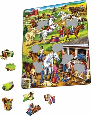 Et morsomt puslespill med 50 brikker fra Larsen. Se det fine motivet av noen hester på en gård vokse frem, brikke for brikke! En morsom aktivitet for hele familien.Anbefalt alder: Fra 3 år.