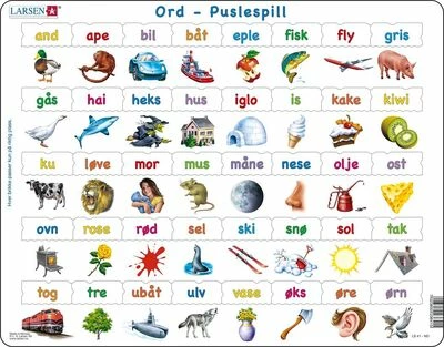 Et lærerikt puslespill med 40 brikker fra Larsen. Puslespillet er en morsom å kreativ måte for barn å lære seg å lese.Anbefalt alder: Fra 3 år.