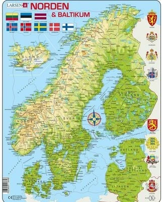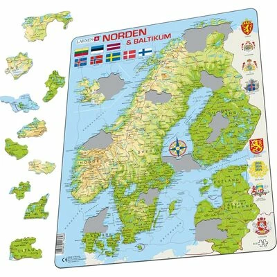 Et morsomt rammepuslespill fra Larsen, som består av 75 biter. Se kartet over de nordiske landene og Baltikum og deres land vokse frem, bit for bit! Fra Island og Norge i vest gjennom byer, innsjøer og elver, til Finland, Estland, Latvia og Litauen i øst. En morsom og lærerik aktivitet for hele familien!Anbefalt alder: Fra 6 år.