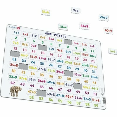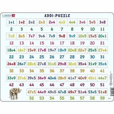 Et lærerikt puslespill med 58 brikker fra Larsen. Jo mer puslespillet vokser, desto flere tall kan du lære deg – brikke for brikke! En pedagogisk måte å trene på tall og regning.Anbefalt alder: Fra 3 år.