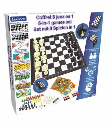 Et morsomt brettspill fra Lexibook, med 8 forskjellige spill i ett! Dette magnetiske brettspillet inneholder klassiske brettspill som sjakk, ludo, stigespill, kinasjakk, bondesjakk og backgammon. Her finner du rett og slett noe for alle i familien! Alle figurer og spillebrikker er magnetiske og fester seg enkelt til brettet. Spillet kan brettes sammen og tas med på reisen eller utflukten.