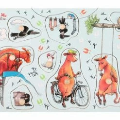 Knottpuslespill med morsomme motiv av Mamma Mø og Kråka. Hver brikke har en knott som gjør de lettere å gripe for små hender. Puslespillet er en morsom måte for barnet å øve på gjenkjenning av farger og former.Anbefalt alder: Fra 1 år.
