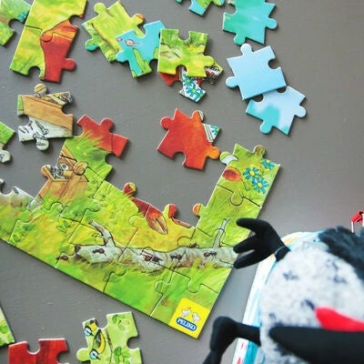 Et fantastisk detaljert puslespill med 54 brikker. Motivet har flotte farger, og forestiller Mamma Mø og Kråka. En utviklende og morsom aktivitet for hele familien!Anbefalt alder: fra 3 år.