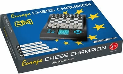 Sjakkspillet M800, fra Millennium.I tillegg til sjakk inneholder M800 også følgende klassiske spill: Drafts, Reversi, Chinese Checkers, Connect Four, Nim, Fox & Geese og Northcote Mind Games. Perfekt for nybegynnere i sjakk!Spillcomputeren har et praktisk rom for sjakkbrikker i bunnen. En stor, opplyst LCD -skjerm brukes til å vise tilleggs-, lærings- og kontrollfunksjoner. Den inkluderer et omfattende bibliotek med åpninger og lokasjonsminne, slik at du kan avbryte spillet når som helst. Gjennom strømforsyningen Millennium 811 kan du koble Europe Chess Champion til strømforsyningssystem i veldig mange land.