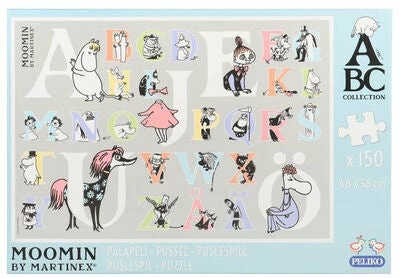 Puslespill Mummitrollet Alfabet med 150 puslebiter i forskjellige former som hjelper barnet å lære seg bokstavene i alfabetet. På de fargerike puslebrikkene gjemmer seg forskjellige figurer fra Mummidalen. Puslespillet er en del av ABC-collection-serien, som er tatt frem for å hjelpe barn å lære seg alfabetet.Laget av resirkulert kartong.Anbefalt alder: fra 3 år.
