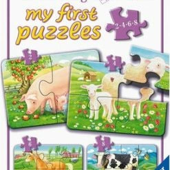 En fantastisk eske for barn fra 2 år som vil legge et lite puslespill. Boksen inneholder 4 forskjellige motiver med forskjellige søte dyr og forskjellige antall brikker. Du kan legge et puslespill med alt fra 2 til 8 brikker – slik at du alltid kan finne et som er enkelt nok til å løse. Det vil være givende for barnet og oppfordrer til å prøve de vanskeligere puslespillene.Ravensburgers puslespill er laget av materialer av høy kvalitet og spesialdesignede verktøy for å sikre en opplevelse av høyeste kvalitet. Med ekstra tykk slitesterk papp, blendefritt linpapir og den perfekte passformen på puslespillbrikkene er det lett å forstå hvorfor Ravensburger er verdens ledende puslespillmerke. Ravensburger puslespill er en morsom måte å trene hjernen din på, ved å styrke din logiske tenkning og korttidshukommelse samtidig som du har det gøy!Inneholder puslespill med 2, 4, 6 og 8 brikker.