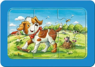 Tre puslespill fra Ravensburger. Disse rammepuslespillene har 6 biter per puslespill og søte motiver av forskjellige dyr. Å legge puslespill stimulerer øye-til-hånd-koordineringen og logisk tenkning. Perfekt for å trene finmotorikken!Størrelse: 22,2 x 16 cm.Anbefalt alder: Fra 2 år.