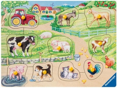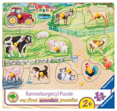 Et fint puslespill med 10 biter fra Ravensburger. Finn de riktige plassene til de forskjellige dyrene og kjøretøyene i puslespillet. Treknottene på puslespillet er lette å gripe for små hender og stimulerer øye-til-hånd-koordinering. Perfekt for å trene opp finmotorikken!Størrelse: 24,2 x 22,2 cm.Anbefalt alder: Fra 2 år.