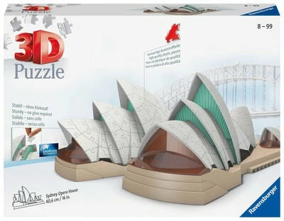 Morsomt 3D-puslespill med motiv av Sydneys ikoniske operahus. Puslespillet inneholder 216 brikker med Easy Click-teknologi, som gir puslebrikkene en perfekt passform. Legg puslespillet brikke for brikke, og bruk det ferdige resultatet som pynt.Anbefalt alder: fra 8 år.