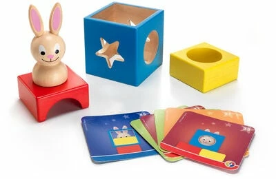 Bunny Boo, et spill fra SmartGames som passer for de aller yngste i familien! Trekk en kanin ut av esken, ser kaninen ut gjennom det runde eller det stjerneformede hullet? Står den på den gule, røde eller blå klossen? Med Bunny Boo kan smårollinger utforske den fascinerende 3D-verdenen, samtidig som de lærer seg nye ting! Inkludert et hefte med 60 utfordringer og løsninger, spilleregler, en rød, gul og blå trekloss og en kanin.Anbefalt alder: Fra 2 år.