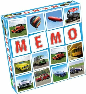 Tactic Kjøretøy Memo er et memospill med forskjellige kjøretøymotiver. Snu på to memobrikker og se om de er like. Om du får et par får du beholde det og fortsette spillet. Spilleren med flest par vinner. Inneholder 72 brikker. Anbefalt alder: fra 3 år.