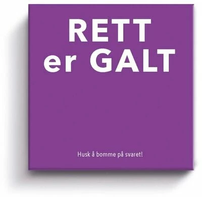 Rett er Galt, et morsomt spill fra Tactic. Dette er et vanskelig quiz-spill, der alt er opp ned og du til og med skal svare feil. Spilleren som først har samlet fem kort, vinner!Anbefaler alder: fra 15 år.