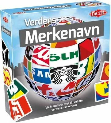 Merker Over Hele Verden, et morsomt quizspill fra Tactic. Kjenner du igjen noen av verdens største merker? Dette kompakte spillet inneholder kjente merker, som har formet våre liv på forskjellige måter. Hvert kort har et bilde av et kjent merke, et spørsmål om det og litt informasjon om dets fascinerende historie. Ingen trenger å sitte og vente på sin tur, alle spillerne svarer på spørsmålene samtidig.Anbefalt alder: fra 12 år.