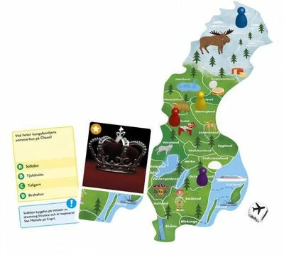 Et morsomt spill om Sverige fra Tactic! Reis rundt i landet på sykkel eller med fly, på hvert reisemål vil du få en rekke spørsmål om Sverige. Spørsmålene kan dreie seg om tradisjoner, kultur, sport, fritid og mye mer! Samle poeng fra hver kategori, den første med full pott vinner!
