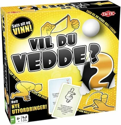 Vil du vedde? Går ut på at alle spillerne forsøker å løse lure fysiske og mentale oppgaver, samtidig som de andre spillerne vedder om spilleren klarer å løse oppgaven eller ikke. Et morsomt og utfordrende spill for hele familien! Anbefalt alder: Fra 8 år.