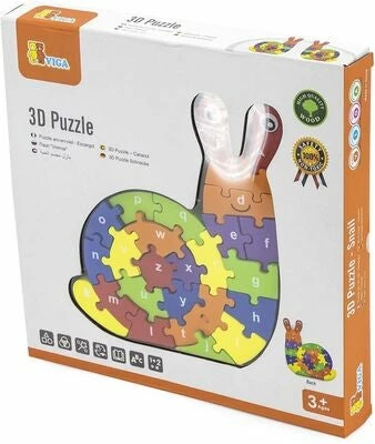 VIGAs sneglpuslespill er et morsomt 3D-puslespill i tre, som passer fint for de yngre barna. Puslespillet er en lærerik leke, som lærer barna om farger, former og bokstaver, samtidig som den logiske tenkingen trenes opp. Anbefalt alder: 3 år +.