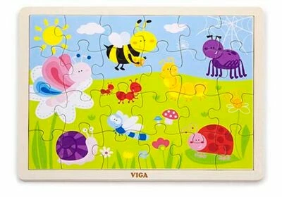 VIGA Puslespill Park er et fint puslespill med 24 deler. Puslespillet har et fargerikt motiv av forskjellige dyr som lever i parken. Spillet har en ramme som gjør det enkelt holde delene på plass. Anbefalt alder: Fra 3 år.Mål: 30 x 22,5 x 1 cm.Materiale: Plywood, MDF.Farge: Miljøvennlig lakk og vannbasert farge.Produktet er testet og godkjent i henhold til europeiske krav.