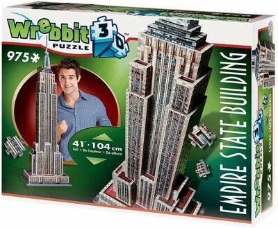 Kreativt, unikt Empire State Building 3D-puslespill fra Wrebbit i papp og skumplast. Perfekt for mange timers kreativ lek og læring. – 975 Brikker. – Mål: H 104 x B 34,25 x L 21 cm. – CE-merket. – Anbefalt alder: fra 12 år.