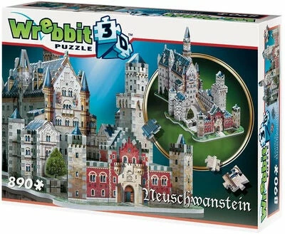 Kreativt, unikt Neuschwanstein Castle 3D-puslespill fra Wrebbit i papp og skumplast. Perfekt for mange timers kreativ lek og læring. – 890 Brikker. – Mål: H 38,75 x B 55,75 x L 29 cm. – CE-merket. – Anbefalt alder: fra 12 år.